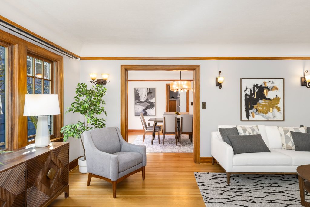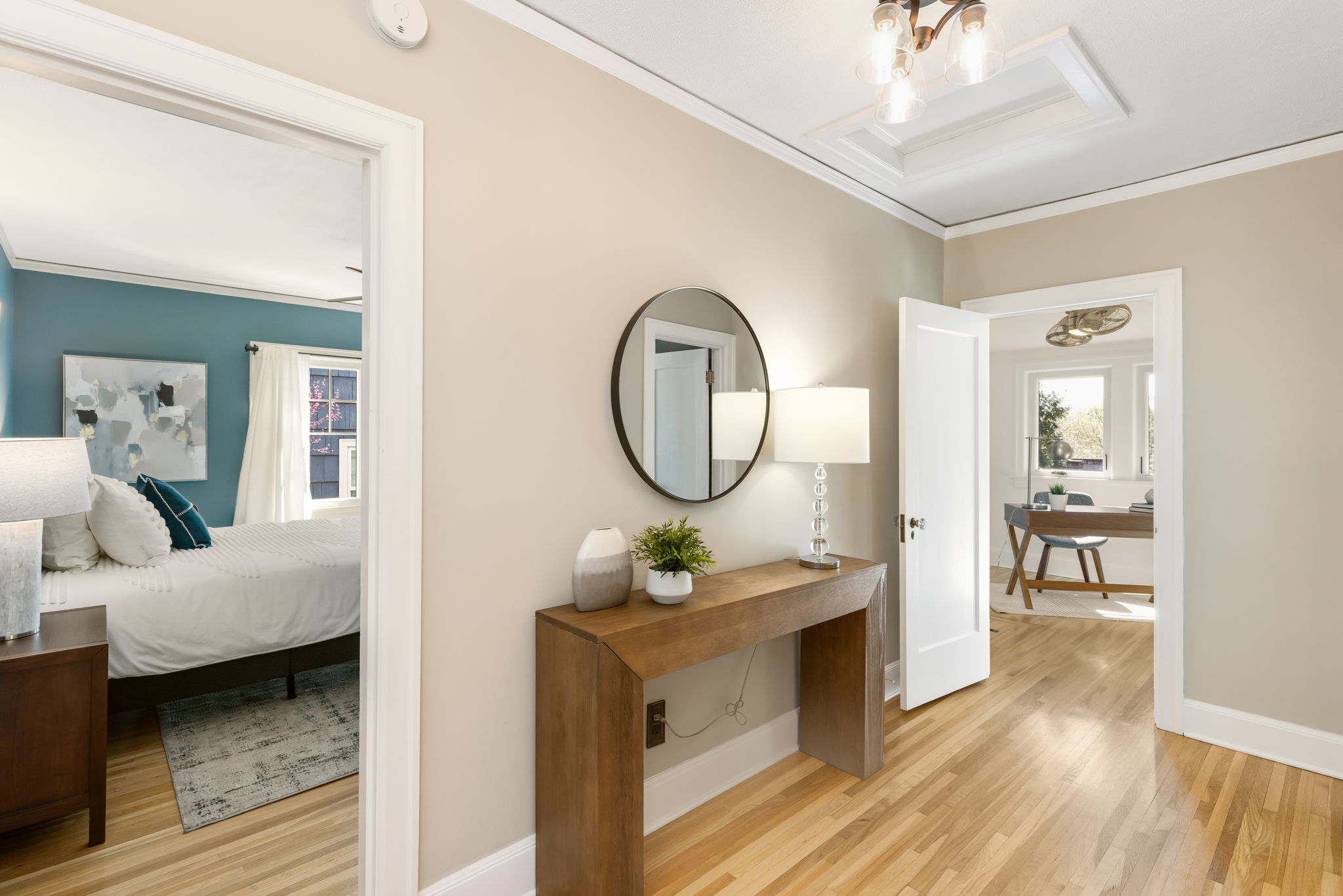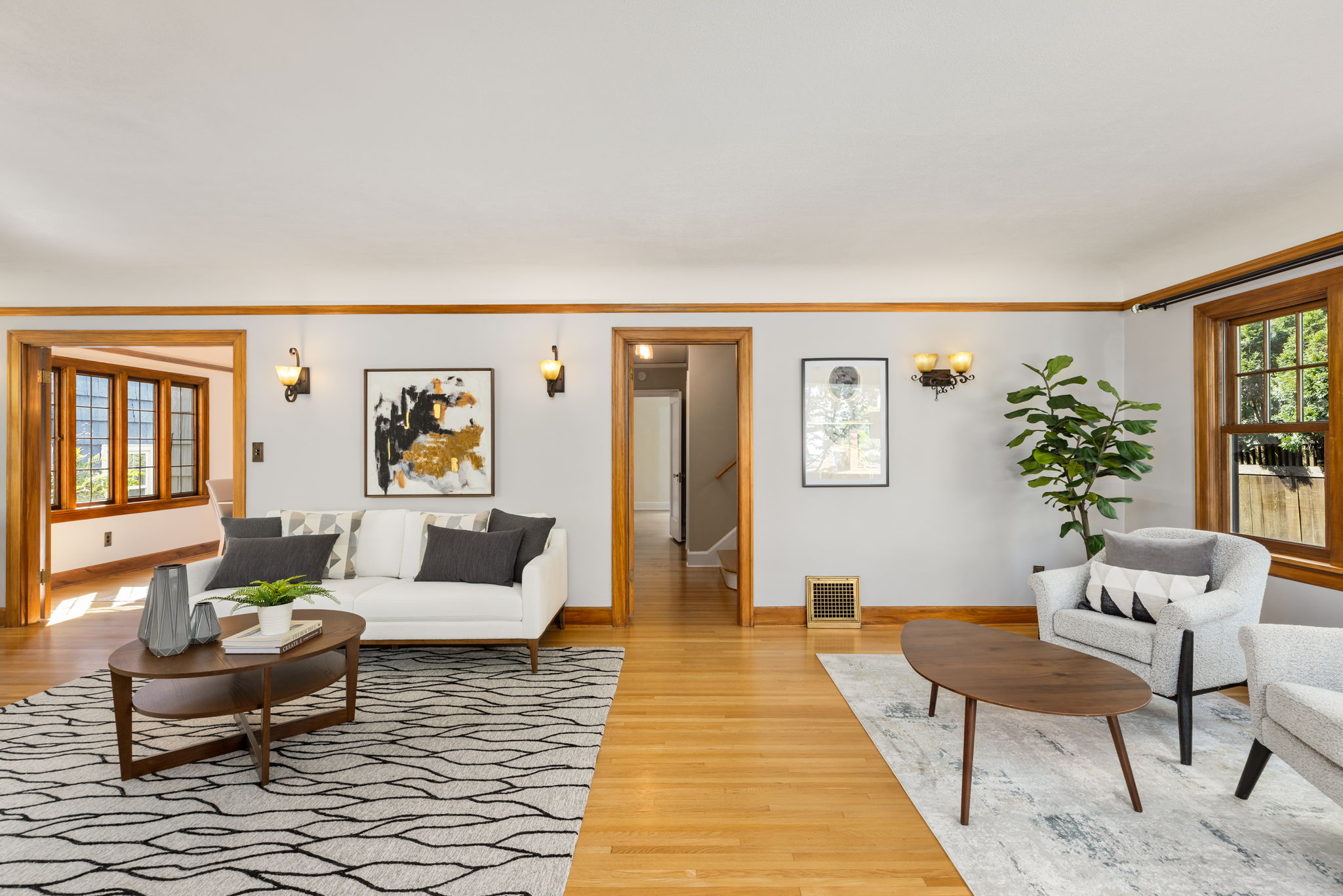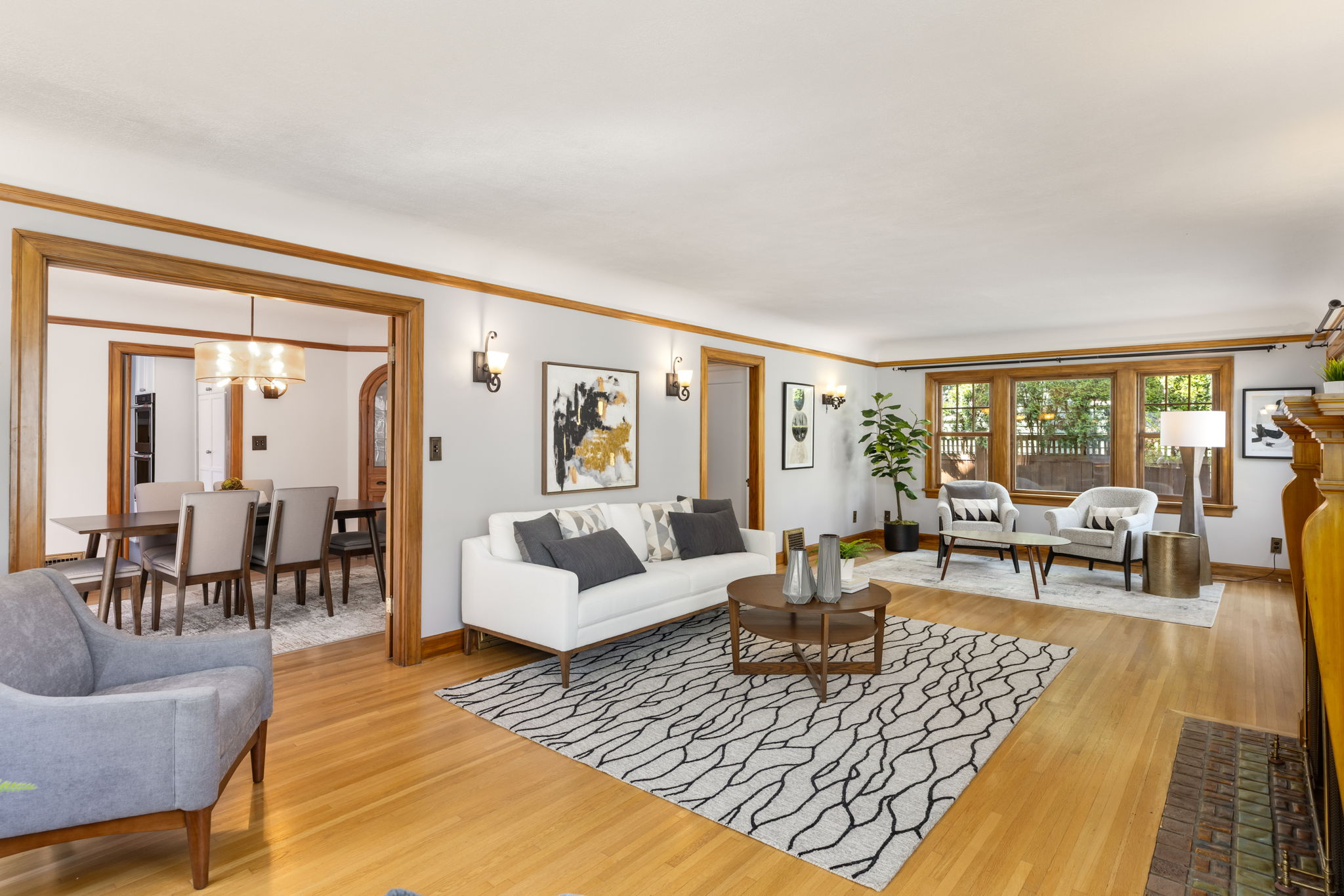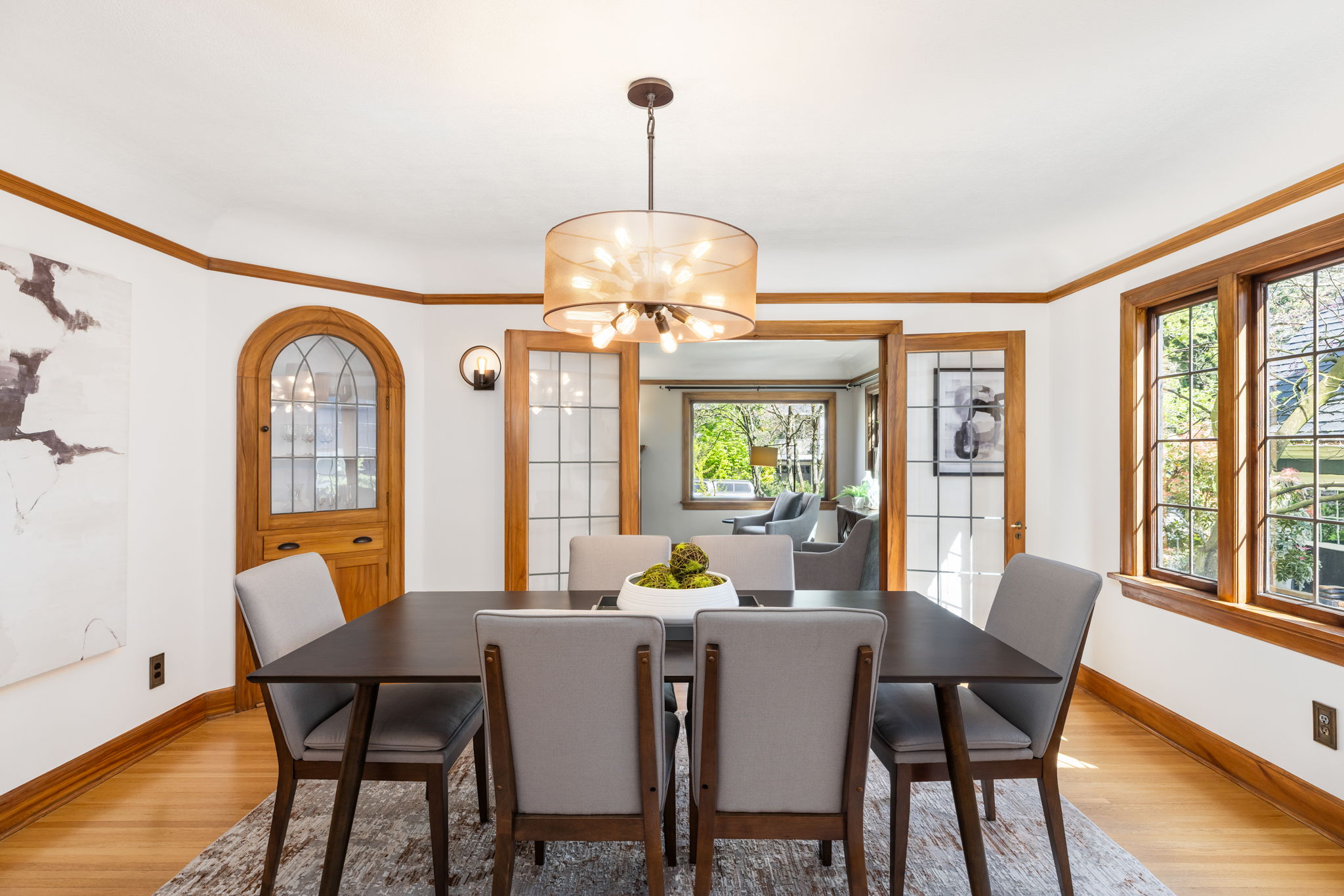 Blue-chip Laurelhurst location. Refined traditional residence blends timeless architecture with sophisticated modern sensibility, offering a thoughtfully curated remodel that honors the home’s original character while introducing updates. The eat-in kitchen and baths have been tastefully reimagined with period-appropriate design and modern functionality. Rich hardwood floors span the main and upper levels, complemented by pristine natural woodwork, leaded glass windows, and a stunning statement fireplace with exquisite tile. The upper level features two generously proportioned bedrooms, a full bath, and a versatile office or bonus space. The finished lower level provides exceptional flexibility with a media room and a fourth bedroom. Abundant storage throughout and an oversized garage offer both convenience and ease of living. Set among tree-lined streets, this home enjoys close proximity to neighborhood favorites including Laurelhurst Theater, acclaimed dining, and gourmet markets. Outdoor living is equally compelling with nearby access to Laurelhurst Park and the scenic trails of Mount Tabor Park. Located within the coveted Laurelhurst Elementary and Grant High School cluster. A rare offering that effortlessly captures the essence of updated, refined traditional living with a modern twist.
